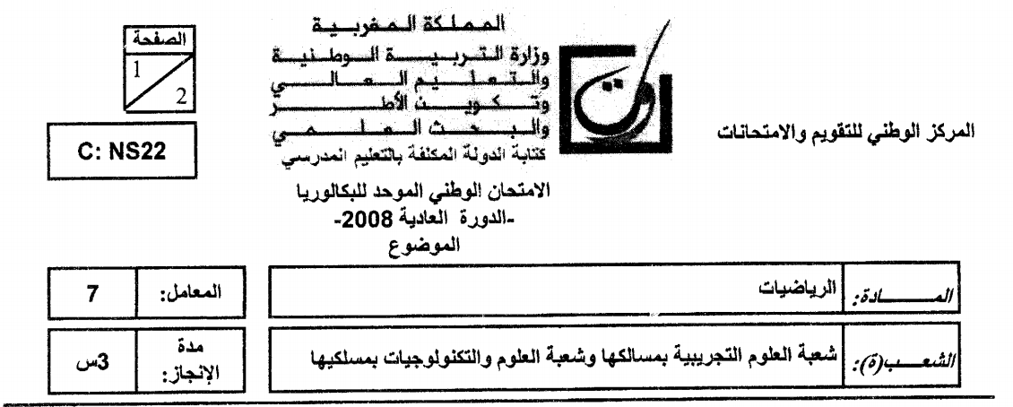 الامتحان الوطني لماذة الرياضيات لسنة 2008 مع التصحيح عالم الرياضيات